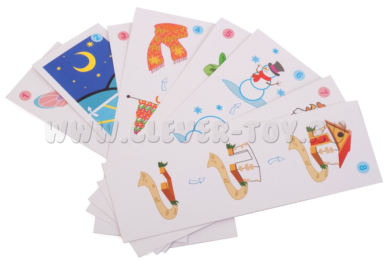 В процессе игры можно описывать последовательность события, проговаривая ситуацию ДО и ПОСЛЕ, или задавая ребёнку наводящие вопросы: «Что происходит раньше?», «Что за этим следует?», «Что происходит позже?».