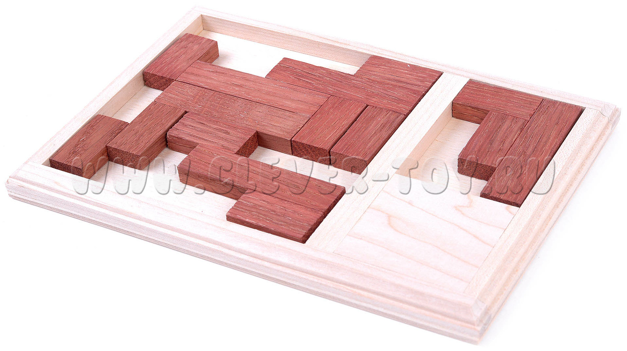 Головоломка “Пятый не лишний” – название сразу объясняет правила игры. У вас есть 4 деревянных детали в большой рамке и одна в маленькой. Ваша задача – уложить все элементы в большой рамке.