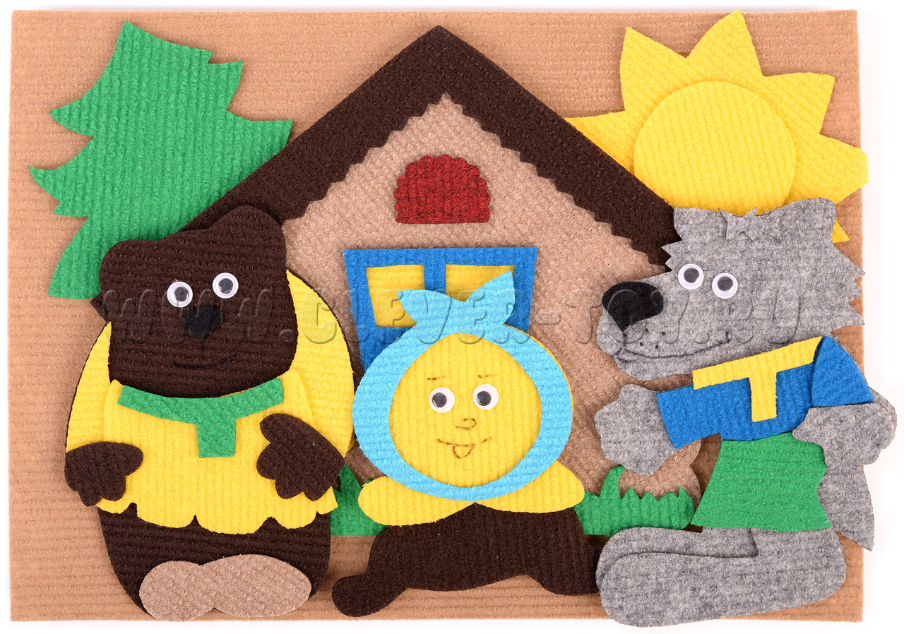 Герои сказки «Колобок» буквально оживают в руках вашего малыша. Ковролиновые герои сказки на липучках: