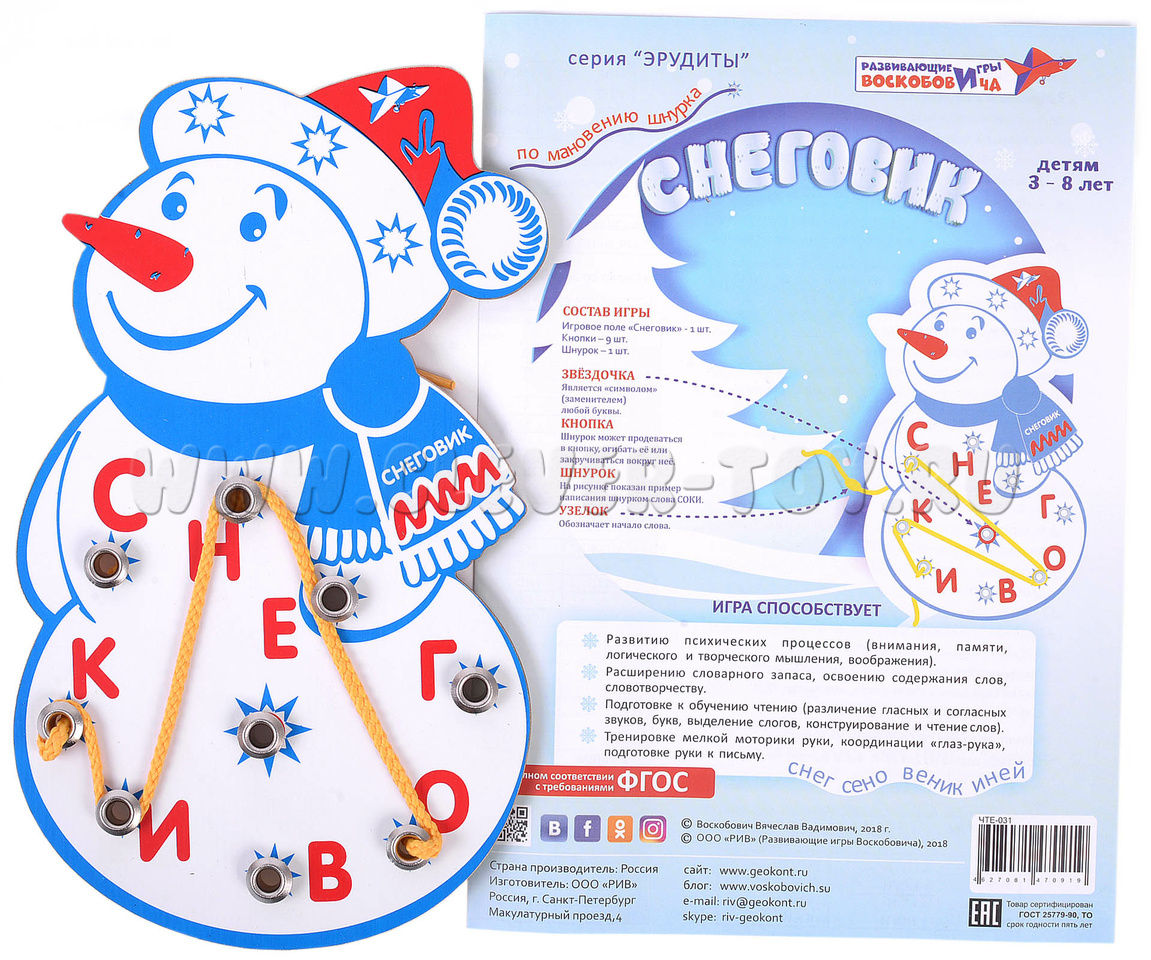 Данная игра из серии игрк Воскобовича "Шнур-грамотей" предназначена для детей 3-8 лет.