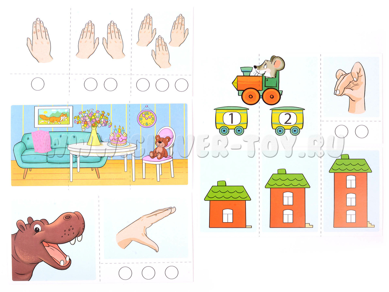 С помощью этого набора ваш ребёнок сможет одновременно произносить звуки, слоги и слова, а также выполнять цепочки движений. Это поможет ему развить пространственные навыки, улучшить моторные функции, а также развить зрительное восприятие и слухомоторную память.