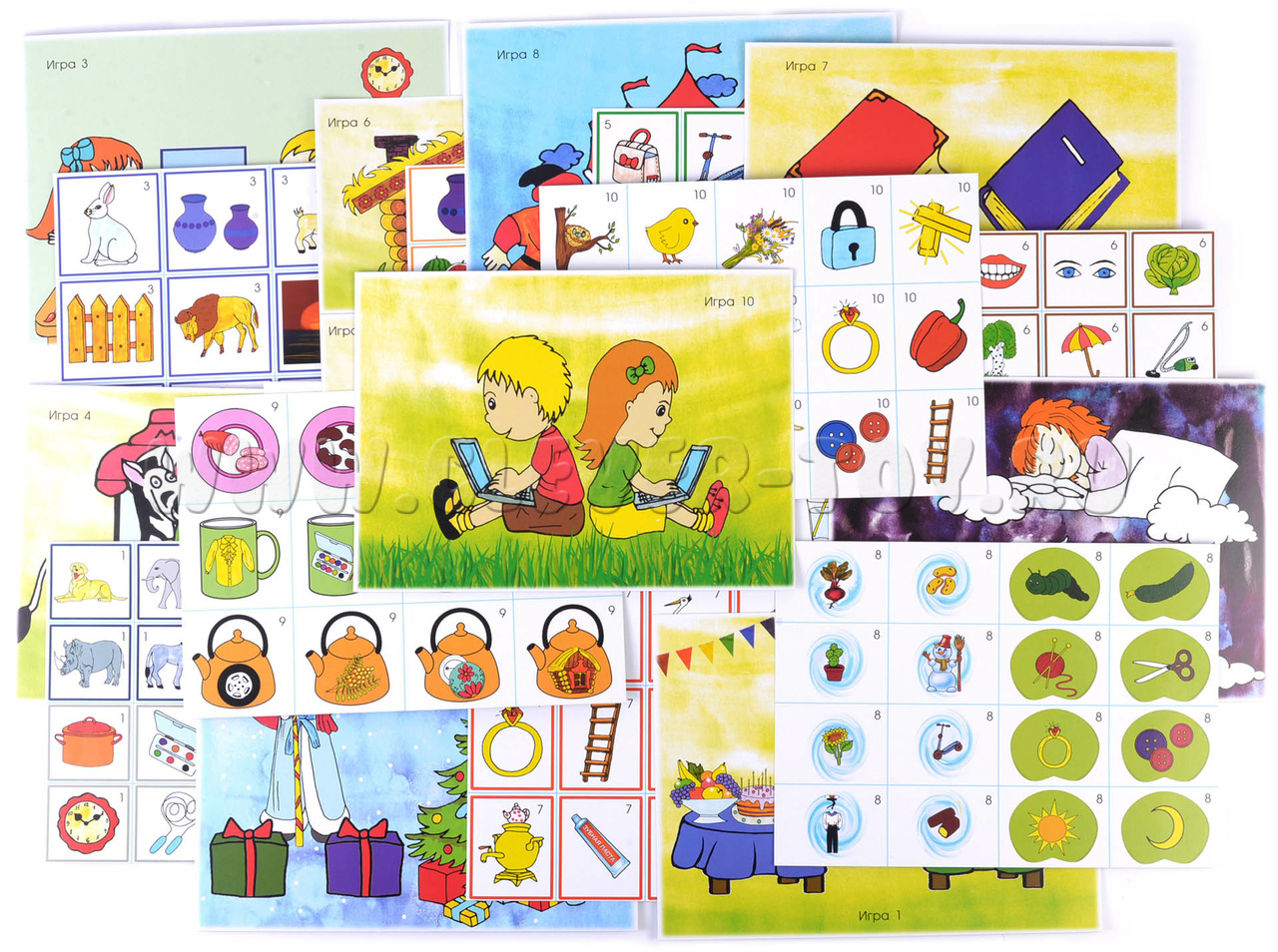 Перед началом занятий требуется разрезать карты по пунктирным линиям (к каждому занятию свои пронумерованные маленькие карточки).