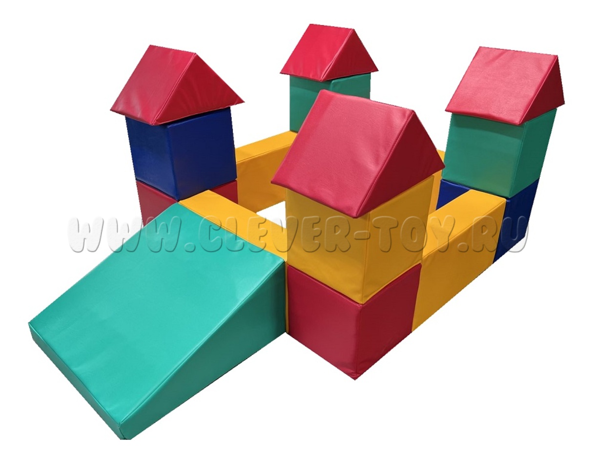 Комплектация: куб – 24х24х24 – 8 шт. горка – 50х50х24 – 1 шт. брус – 50х24х10 – 4 шт. треугольник – 34х24 -4шт.