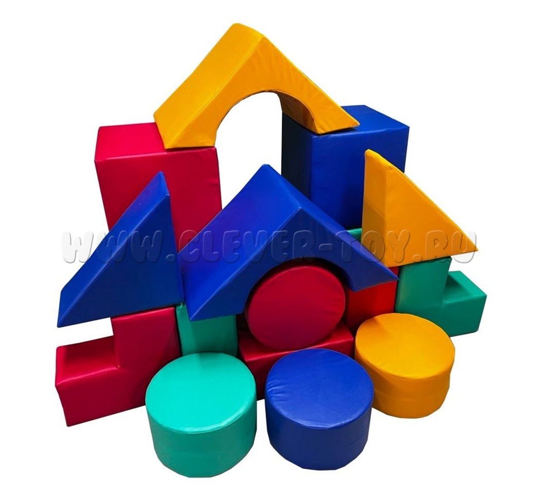 Комплектация: Куб – 40*40*40 – 4 шт. Ступень – 40*40*20 – 2 шт. Арка – 50*50*40 – 2 шт. Брус малый - 40*20*20 – 2 шт. Треугольник – 40*40*20 – 2 шт. Папка большая – 40*20*20 – 1 шт. Таблетка - Д34*20 – 4 шт.