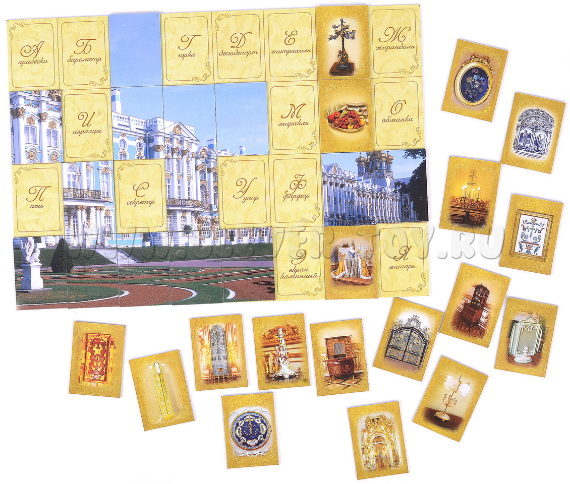С помощью нашего магнитного алфавита вы сможете узнать, какие великолепные вещи окружали прежде хозяев Екатерининского дворца (Царское Село, Санкт-Петербург) - русских императоров и императриц. Названия некоторых предметов вам наверняка знакомы, а какие-то вы встретите впервые. Постарайтесь их запомнить!