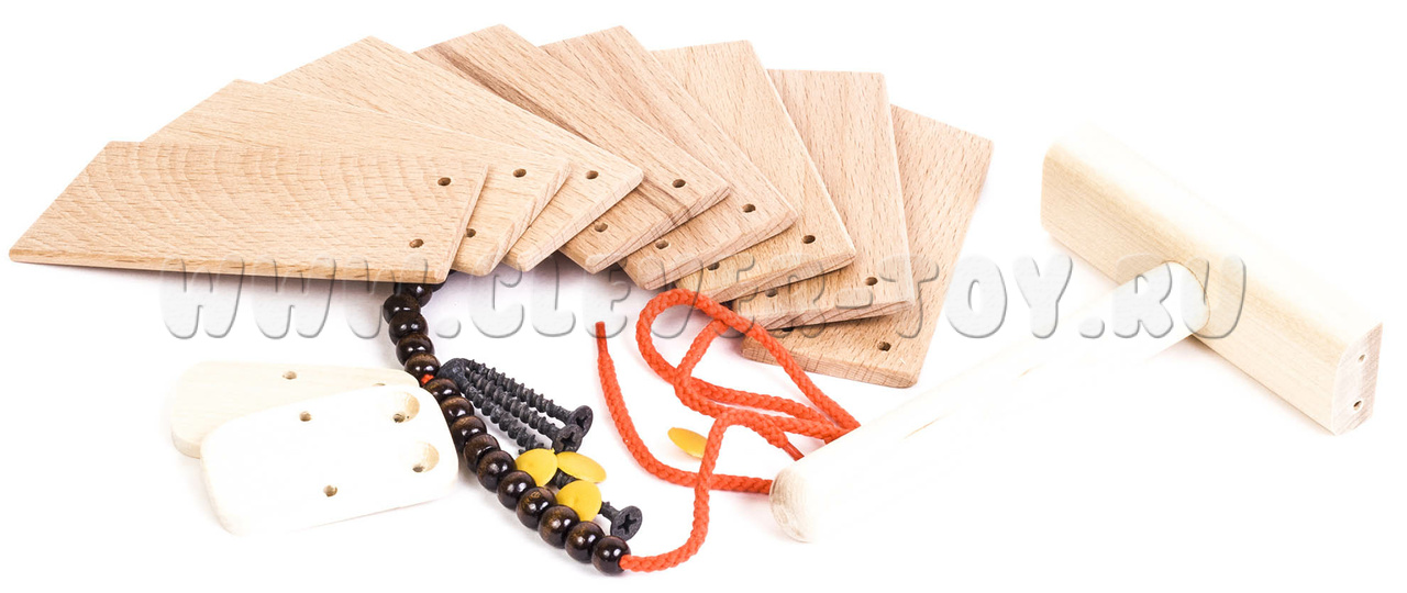 Раньше в народе, для того, чтобы развеселиться, привлечь внимание или даже отпугнуть, использовали шумовые инструменты. Шумовые инструменты относятся к одним из самых древних видов. Они создавались из подручных инструментов (кожи, костей, дерева, глины, а позже железа) и им приписывали магические силы. В нашем музыкальном конструкторе, как раз собраны одни из самых популярных шумовых инструментов, ими можно не просто играть, но и стать их полу создателем. Запакован набор в аккуратную деревянную коробочку, а в ней находится инструкция по сборке и разобранные инструменты: колотушка, трещотка пластинчатая и трещотка пластинчатая с ручкой. Таким набором можно играть всей семьей, тем самым продуктивно проводить семейные вечера и становится еще ближе и счастливей.