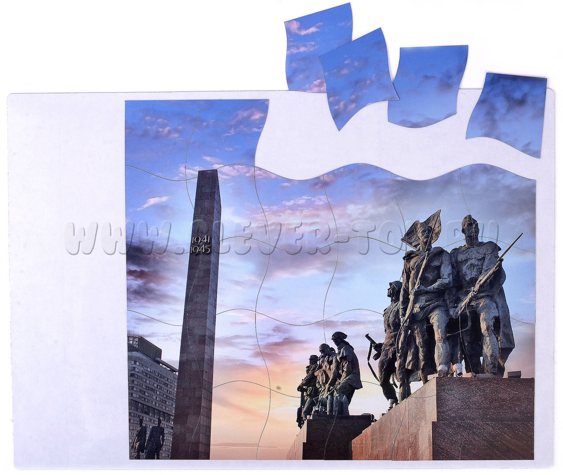 С помощью пазлов можно украсить школьную доску ко Дню Победы 9 мая. Пособие подходит для старшей группы детского сада и знакомит детей с памятниками Великой Отечественной войны.