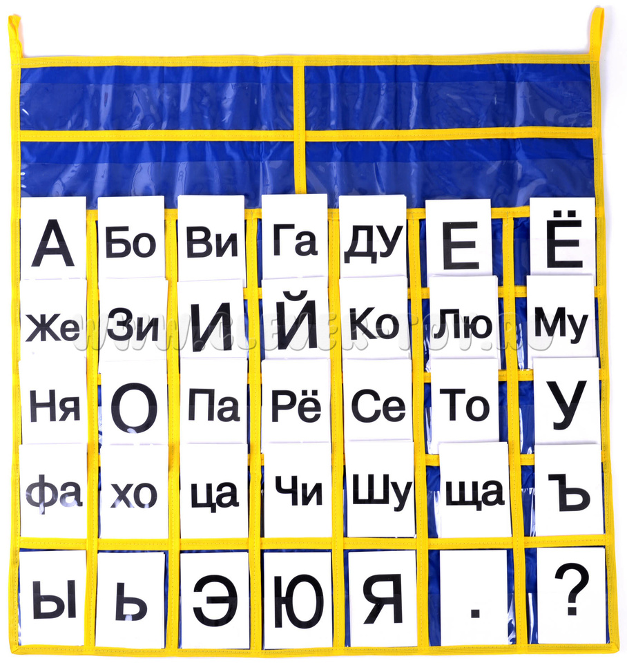 35 прозрачных кармашков (ширина 8 см) для букв, слогов и знаков,