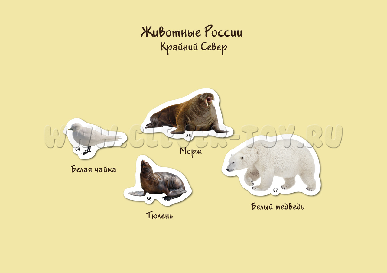 В набор включены 87 животных, обитающих на просторах нашей страны.