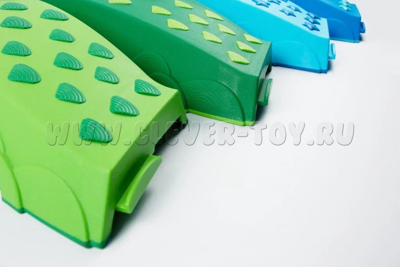 Спортивный инвентарь "Тактильная дорожка» состоит из 8 цветных деталей (сине-голубого цвета), которые можно соединить между собой в замкнутые пути, в форме кольца.